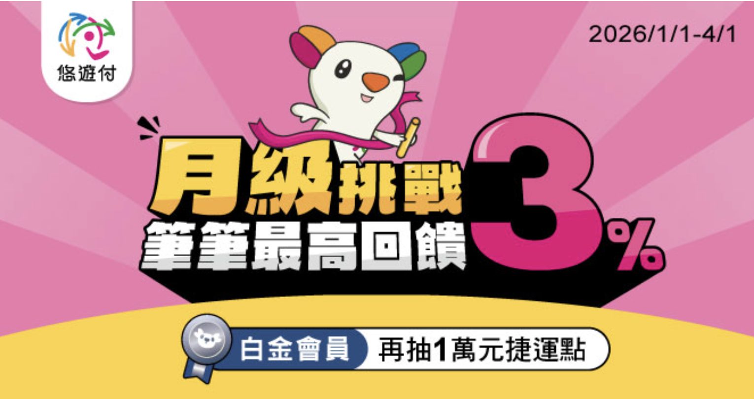 活動內容:根據悠遊付會員等級,使用「錢包」或「連接銀行帳戶」付款,每筆消費最高享 3% 回饋金。此外,每月還加碼送你最高 10 次提領免手續費,讓錢包資金轉回銀行帳戶更靈活省錢!
