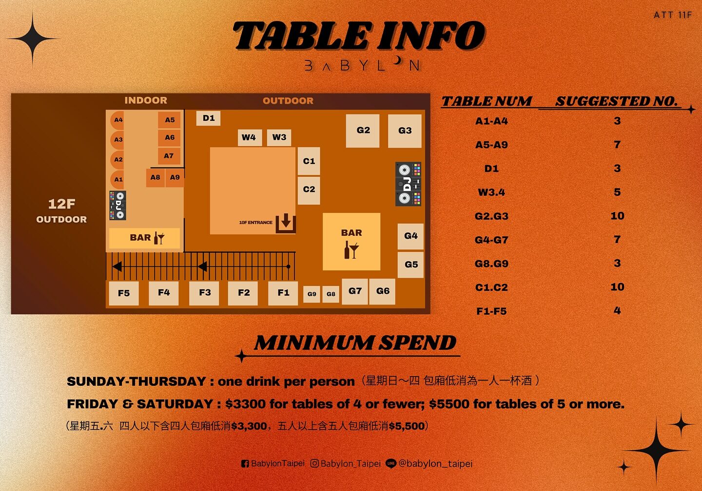 • 訂位資訊:建議透過官方粉絲專頁或電話進行 Babylon Taipei訂位,特別是週末與節日夜晚,位置熱門務必提前預約。