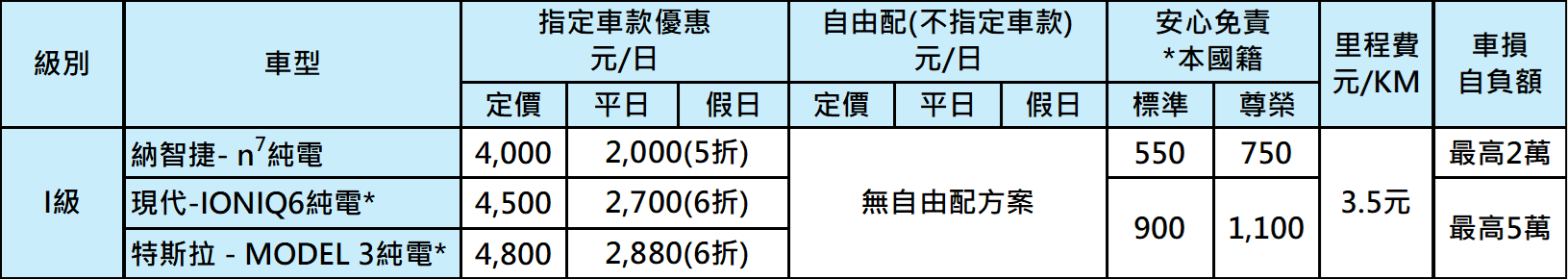 - Hyundai IONIQ 6 / TESLA MODEL 3 不分平假日日租金 6 折