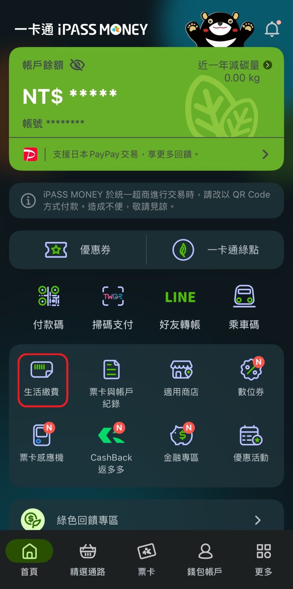 進入一卡通 iPASS MONEY 後點擊「生活繳費」: