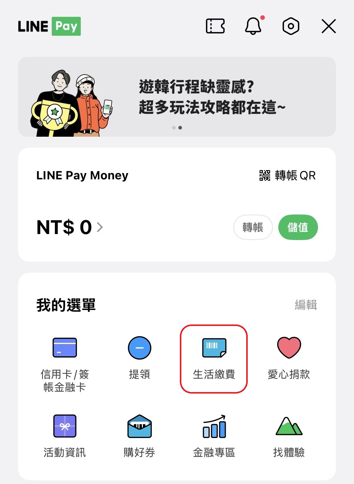 進入 LINE Pay Money 後點擊「生活繳費」: