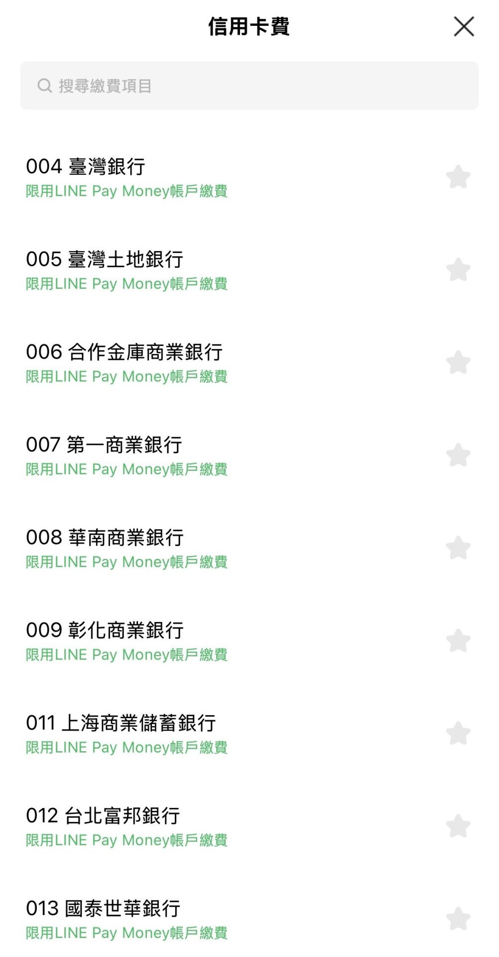 目前可以使用 LINE Pay Money 繳卡費的銀行有以下 25 家:
