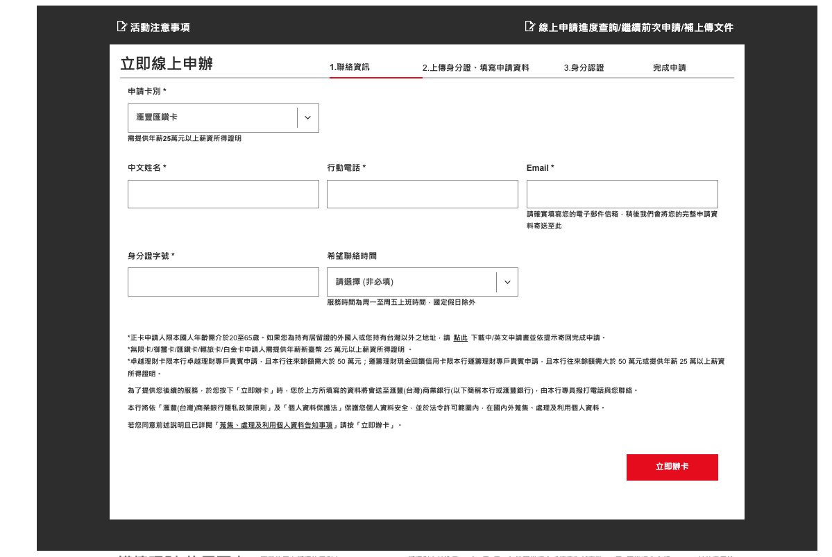 至銀行頁面填寫申辦連結。待核卡後,於銀行規定期間內,刷滿指定金額,即可獲得首刷禮資格