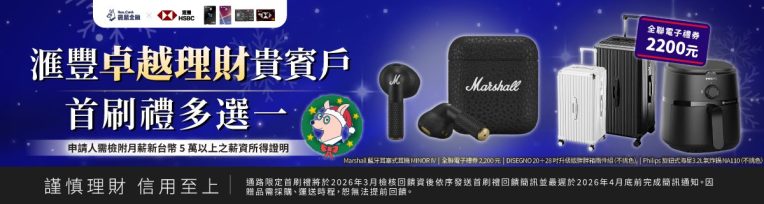 滙豐銀行卓越理財帳戶信用卡首刷禮