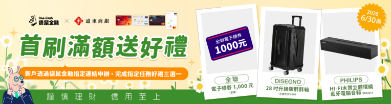 遠銀 樂家+卡立即申請 | 🚩 毛孩爸媽必備神卡!寵物公園、東森寵物、動物醫院最高 10% 回饋! ✨ 家樂福、愛買、美廉社,量販超市採買趟趟有感! ✨ 國內加油不限油站、Gogoro、代扣遠傳/台哥大電信費,生活固定支出通通 4% 回! ✨ 全台餐廳、健身工廠、World Gym,吃喝玩樂養身一卡包辦! ✨ IKEA、六福村、麗寶樂園、LaLaport,親子出遊歡樂加倍享! 🎁 袋鼠限定!2026/04/30 前新戶透過專屬連結申請且符合條件享好禮多選1! ✨ 全聯電子禮券 1,000 元 ✨ DISEGNO 28 吋升級版胖胖箱(不挑色)CY-307 ✨ PHILIPS 飛利浦HI-FI木質立體環繞藍牙電腦音箱-SPA3818 |
