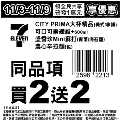 活動三:7-ELEVEN 獨家買二送二優惠券