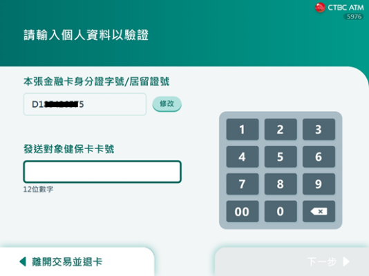 3.輸入身分證字號與健保卡號,請注意身份證為「金融卡持有者」,健保卡號是「領取人」。