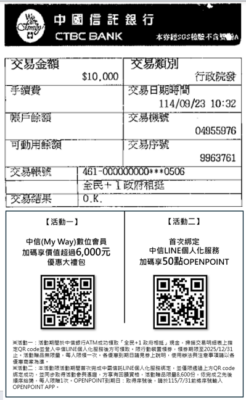 中信這次普發一萬的活動誠意十足,一共推出加碼抽獎及三大好康活動方案,活動價值超過 6,000 元,在中信 ATM 領完錢之後,一定要留下 ATM 吐出的兩張小白單,上面除了交易資訊外,還藏著中信這次的三大加碼活動入口,千萬別丟!