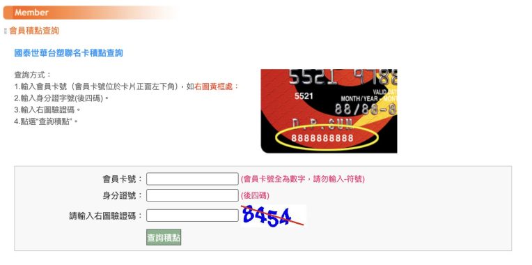 台亞加油站官網,輸入會員卡號、身分證字號末四碼即可查詢。