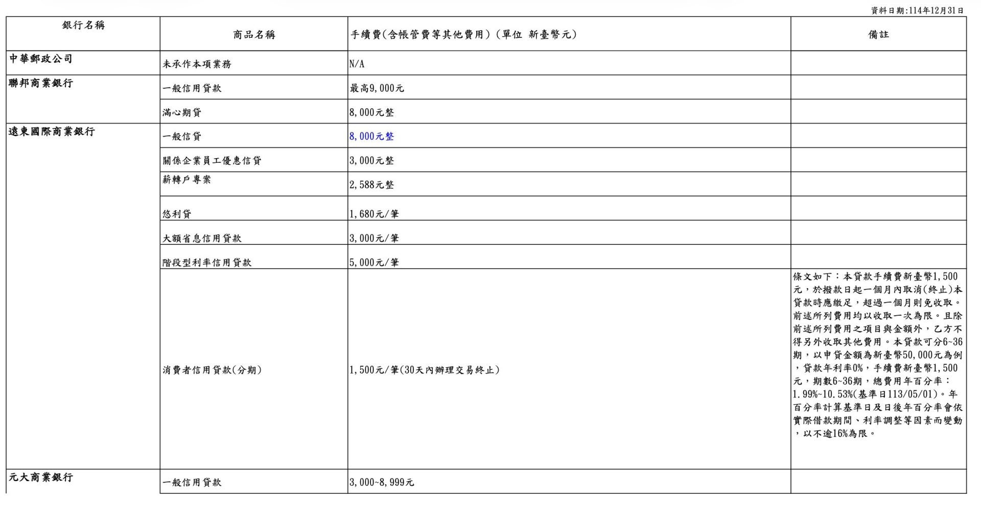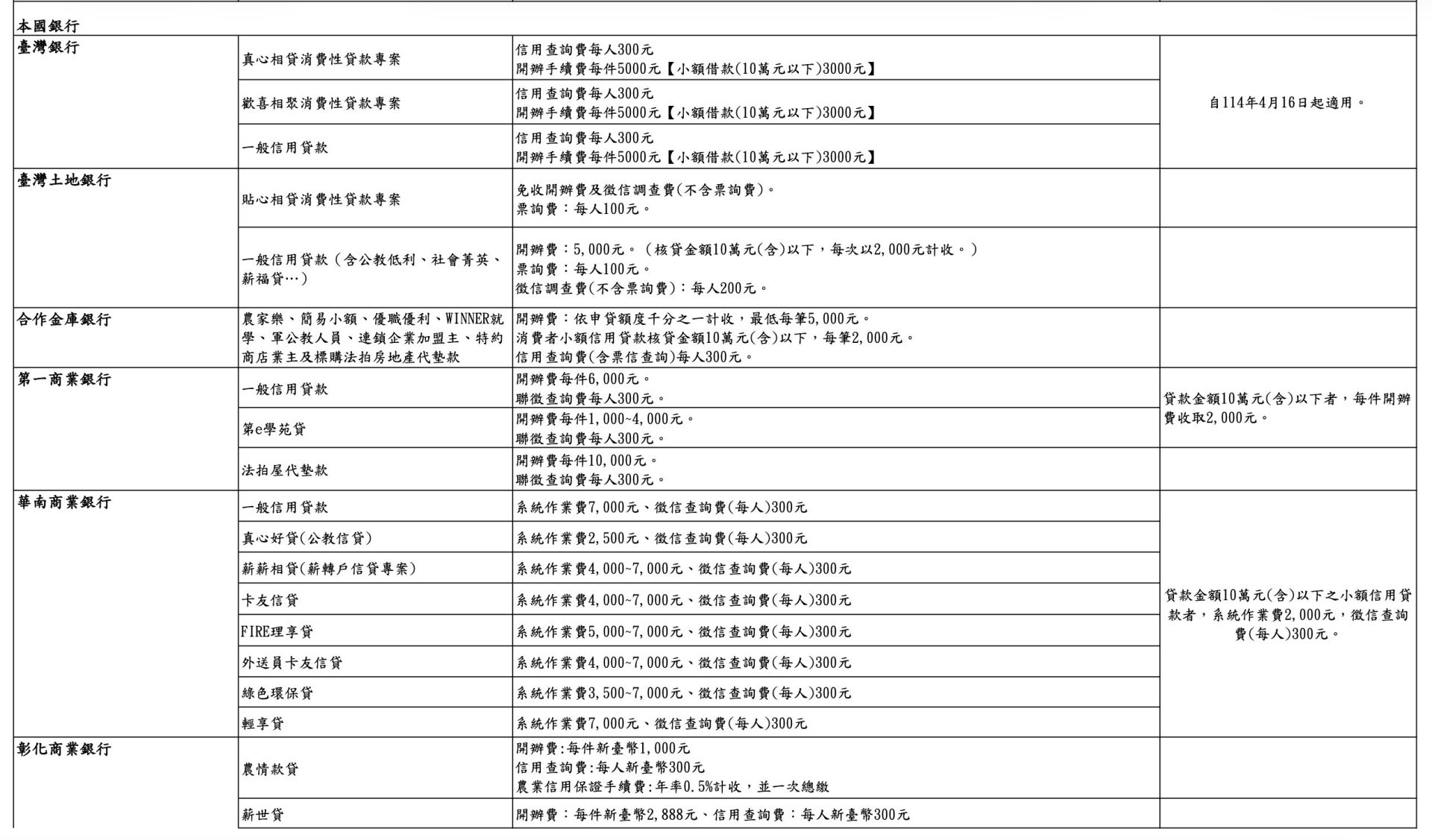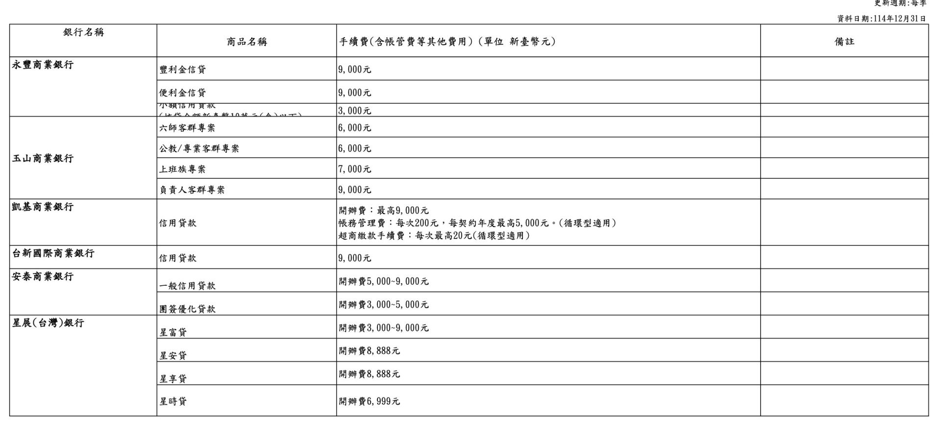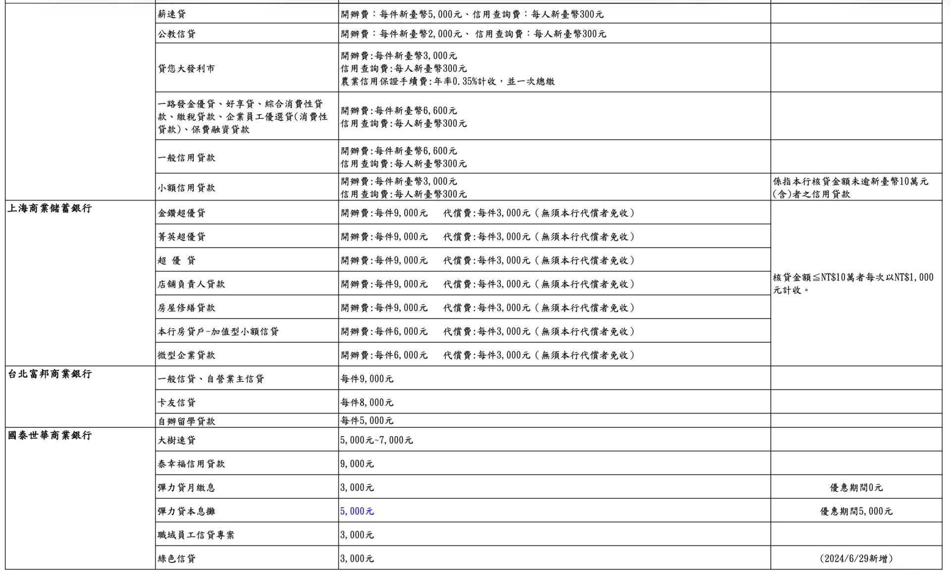 以下是袋鼠金融整理各家銀行針對信用貸款所收取的代辦費及手續費!不同銀行在信用貸款開辦費用的設計上可能有差異,這些費用有時也會依據貸款金額、客戶信用評分、還款年限、限時優惠活動等等因素調整費率。為了協助貸款人更清楚了解各家銀行的收費標準,建議仔細參考本整理之後,找到適合自身需求且符合成本效益的貸款方案。