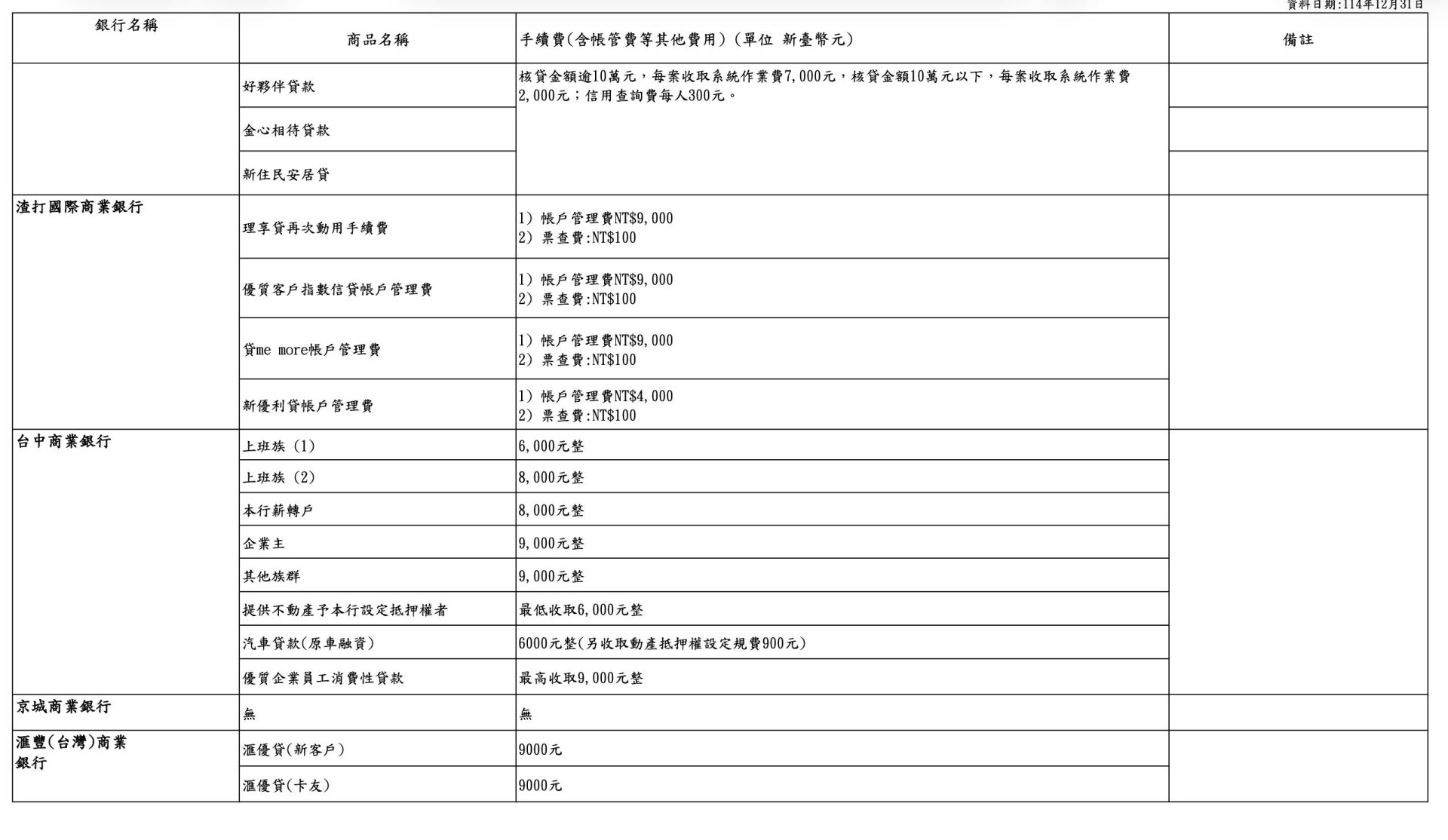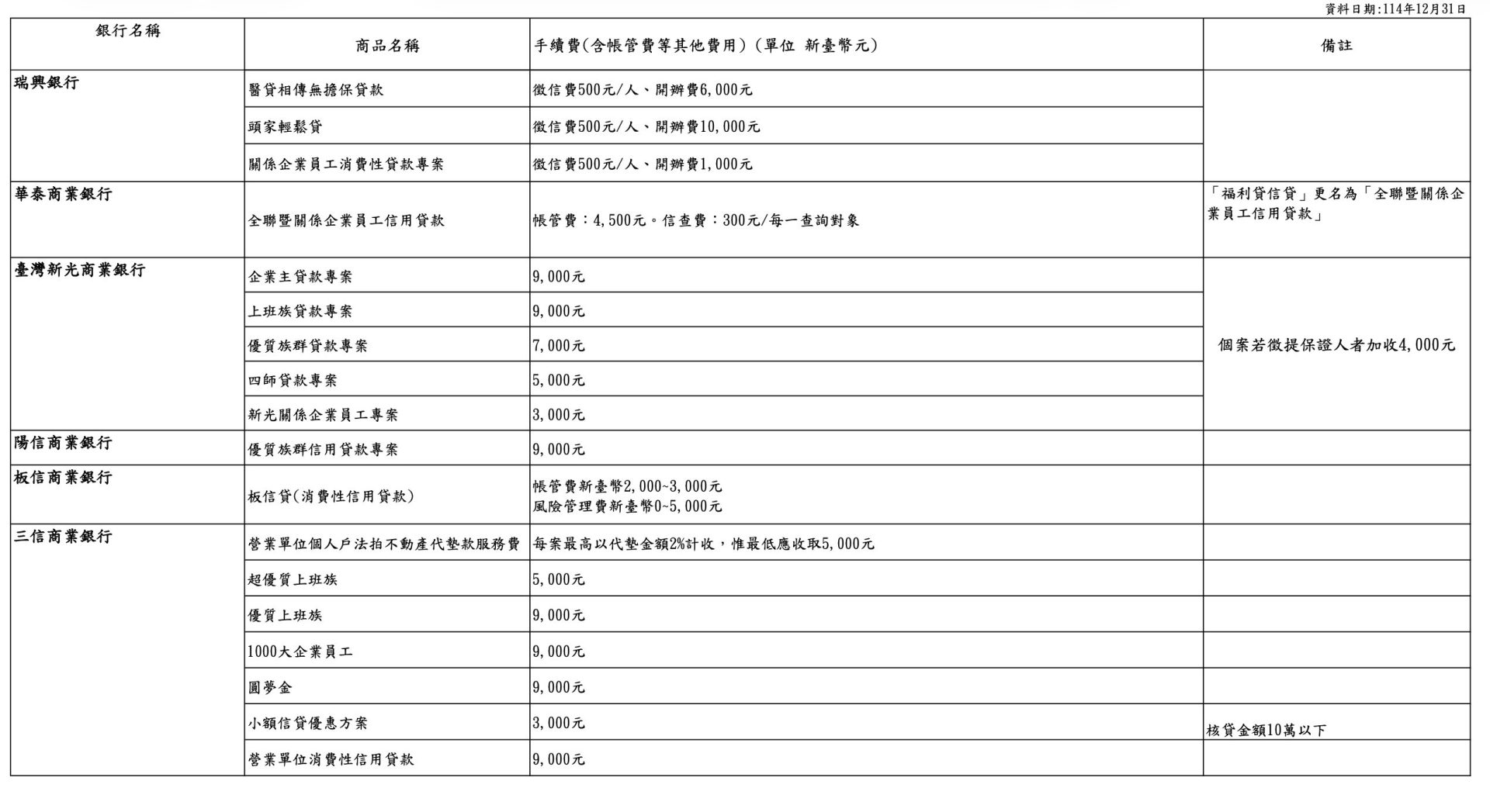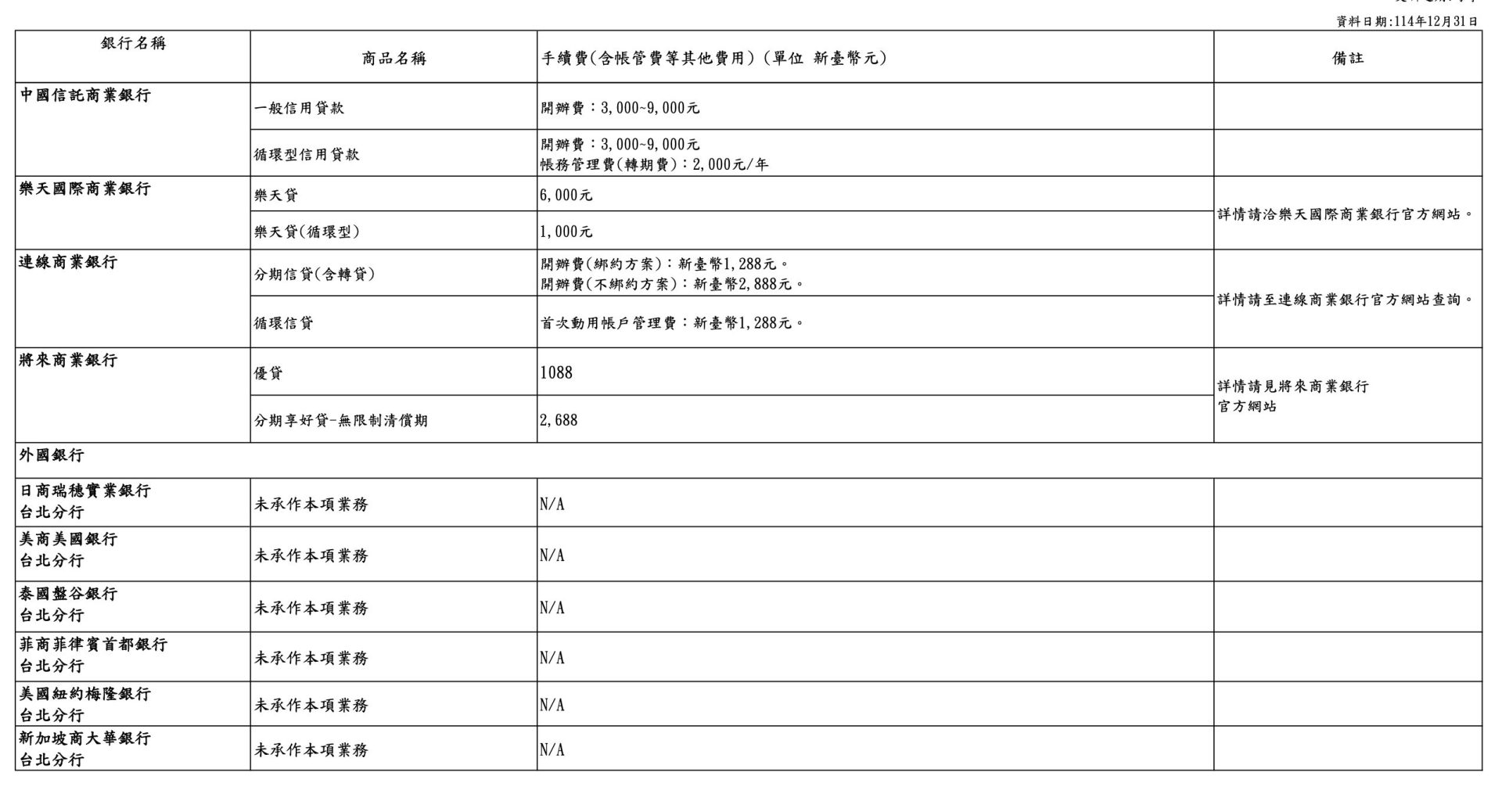 以渣打銀行為例,該行針對不同的信貸方案提供了多樣化的手續費標準: