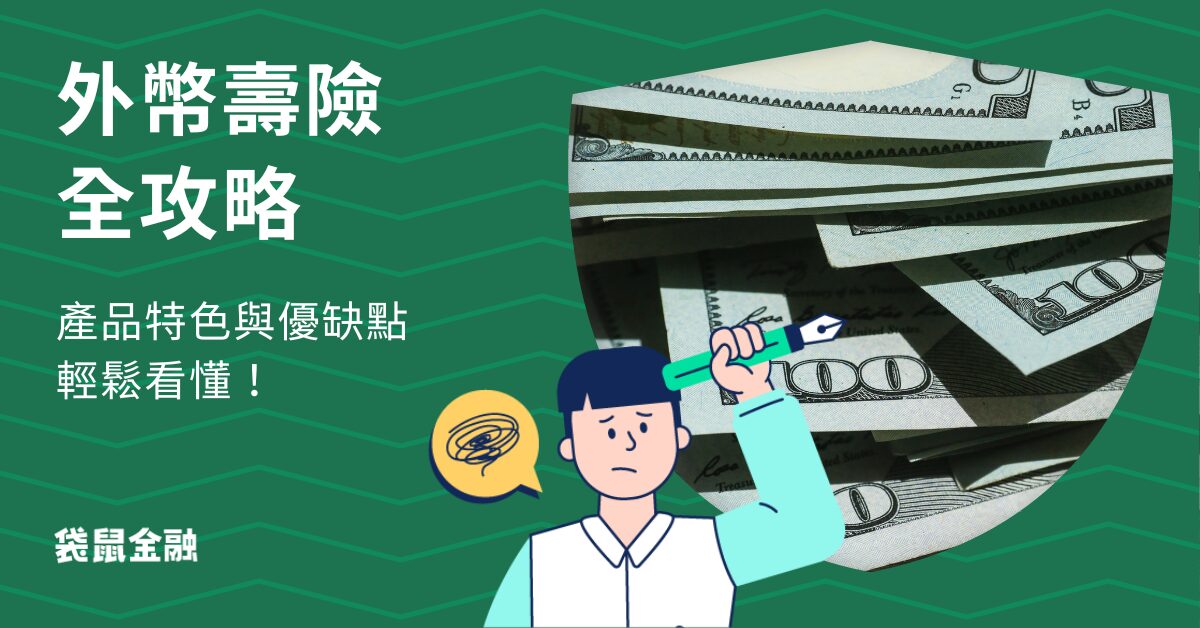 袋鼠金融導讀|想了解外幣壽險與台幣壽險的差異嗎?想知道外幣壽險具備什麼樣的特色嗎?別擔心,就讓袋鼠金融一篇文章報你知!在這篇文章中,我們將深入解析外幣壽險定義、特色、理賠範圍、優缺點、適合對象等等資訊,也會整理市面上常見的熱門外幣壽險產品資訊,幫助對外幣壽險有興趣的朋友,可以輕鬆掌握外幣壽險的資訊,做出最適合的資產配置與投保選擇!除了外幣壽險之外,如果還想了解更多壽險與保險相關資訊,也可以看看〈壽險懶人包〉、〈定期壽險攻略〉、〈投保紀錄查詢指南〉唷!