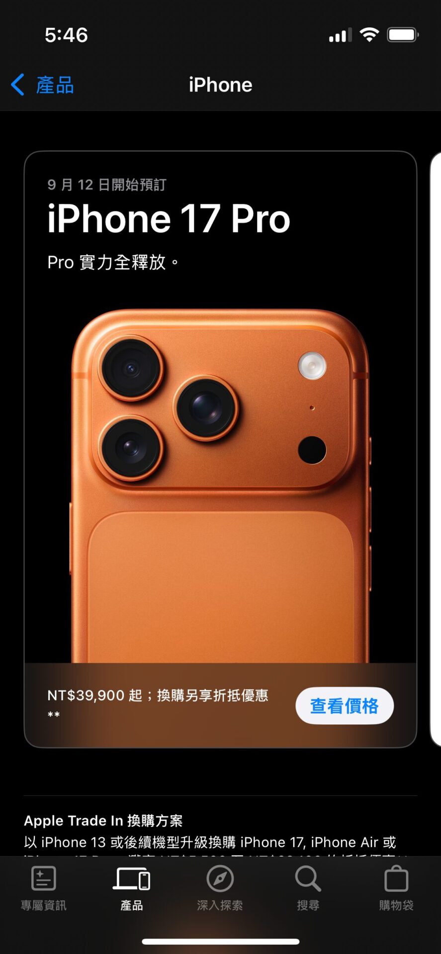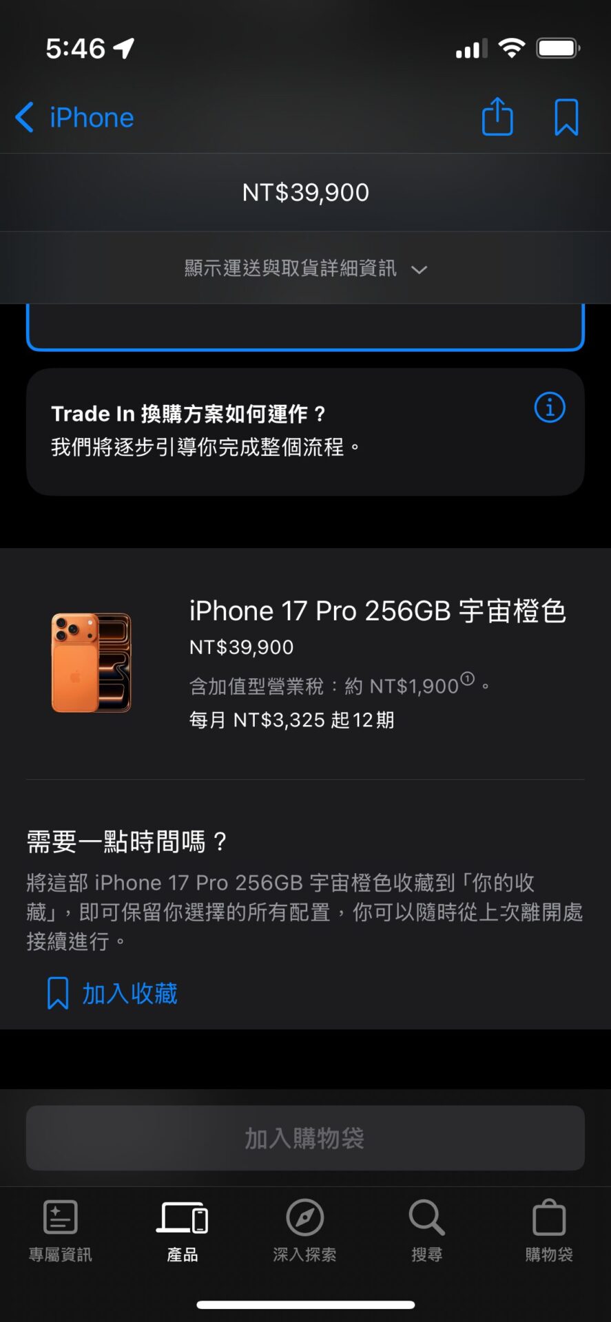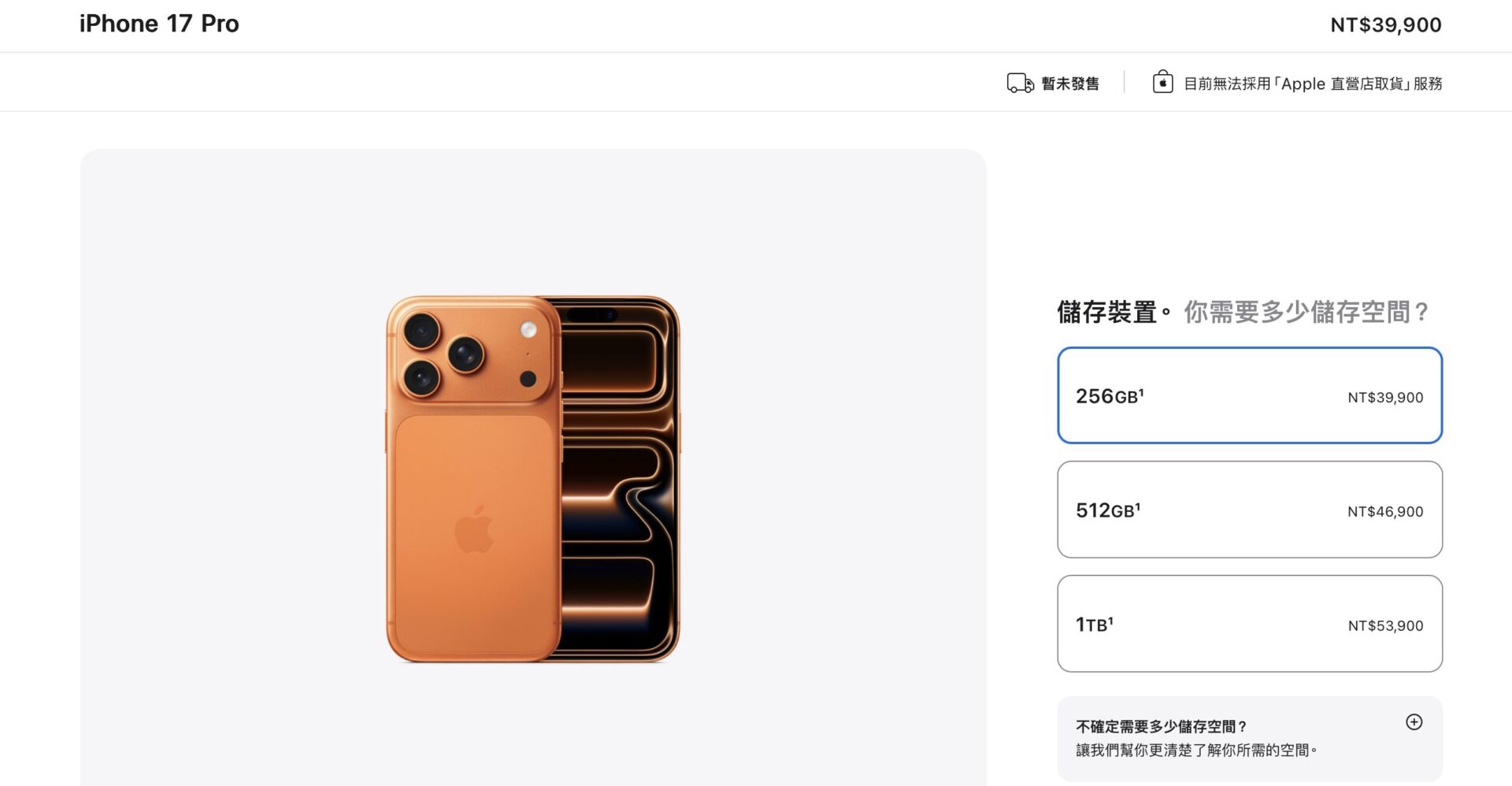 iPhone 17 Pro | 256GB | NT$ 39,900 |