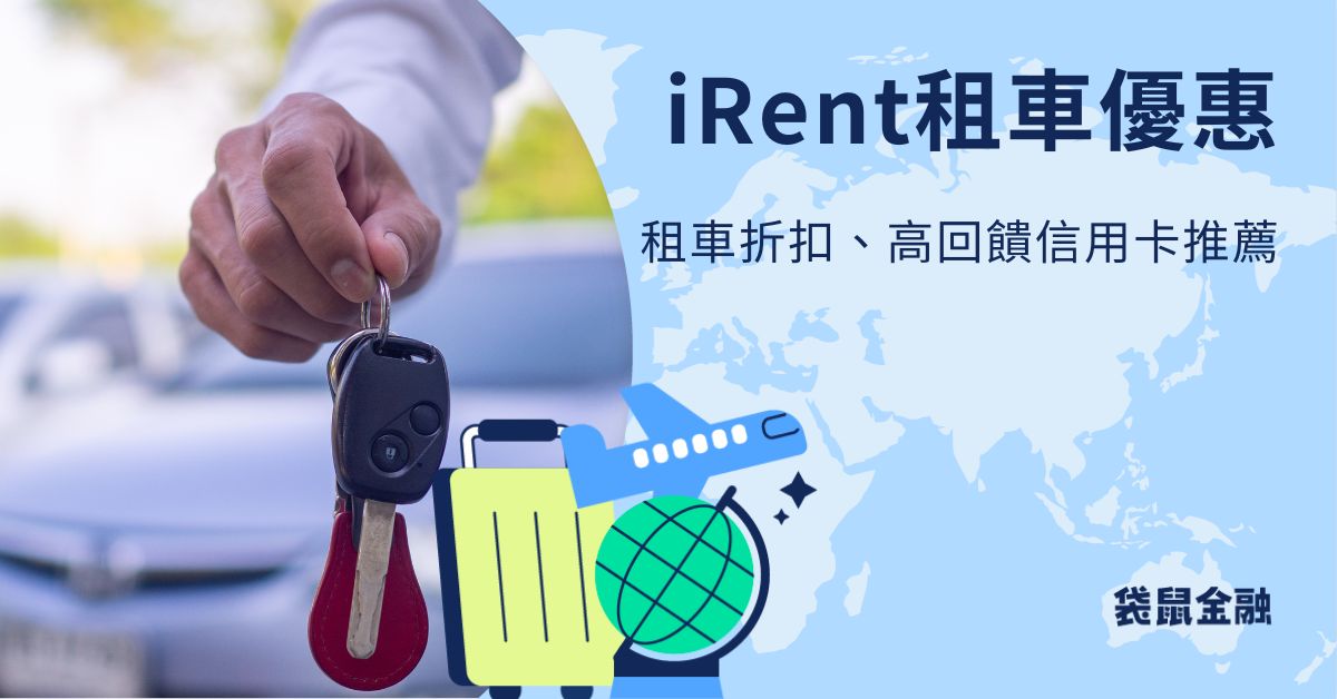 袋鼠金融導讀│iRent 優惠有哪些? iRent 租車費用有多種方案供選擇,因此袋鼠金融幫大家整理了幾個你一定要知道的 iRent 優惠與信用卡回饋首選!iRent 一般租車比較之下,除了租車時間彈性外,據點也比實體門市多了不少,讓 iRent 成為出門在外租車的便利首選,想知道究竟有哪些 iRent 優惠嗎?那就趕快一起往下看吧!另外,如果你目前還沒打算買車,也可以搭配通勤信用卡、共享機車信用卡推薦或信用卡推薦保護荷包!