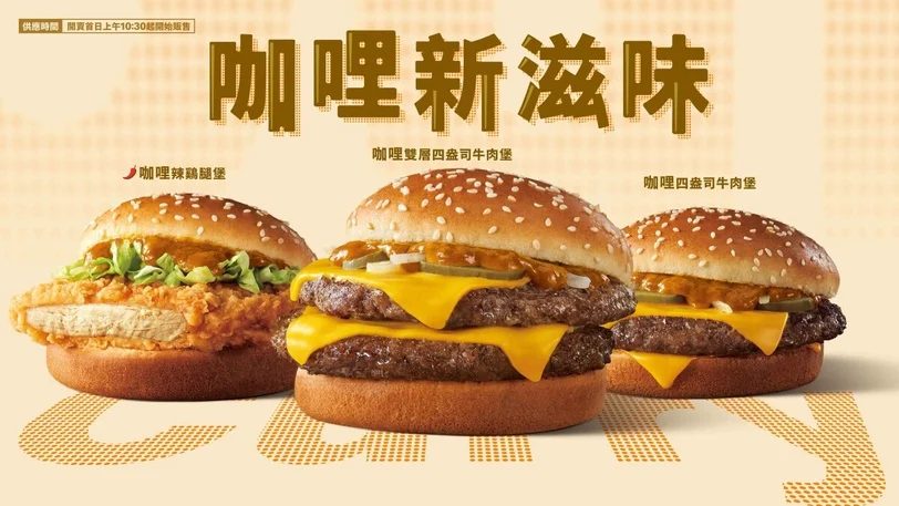 • 咖哩雙層四盎司牛肉堡:單點價 NT$ 132 元 ,套餐價$197 元