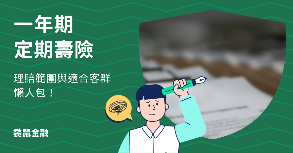 袋鼠金融導讀|在規劃個人保險安排時,面對市面上這麼多種壽險、產險的資訊,也感到一頭霧水嗎?別緊張,袋鼠金融在這篇文章中,將會為大家深入解析一年期定期壽險的保障特色與理賠範圍,也會透過介紹幾個熱門的一年期定期壽險方案,來幫助你更加了解一年期定期壽險的相關資訊,就可以更加輕鬆地掌握其與多年期定期壽險的差異、優缺點與適合投保族群,讓有需要的朋友可以選到最適合自己的保險!除了一年期定期壽險之外,如果還想了解更多壽險與保險相關資訊,也可以看看〈壽險懶人包〉、〈定期壽險攻略〉、〈投保紀錄查詢指南〉唷!