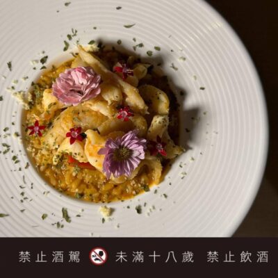 海鮮料理的部分也十分亮眼,例如 《蒜辣紅椒蝦扁麵》,以蒜香與紅椒提味,帶點辣勁,搭配新鮮蝦仁,層次豐富;而 《柚子胡椒干貝蝦燉飯》 則將海鮮鮮甜與柚子胡椒的清香完美融合,是不少常客心中的必點之選。