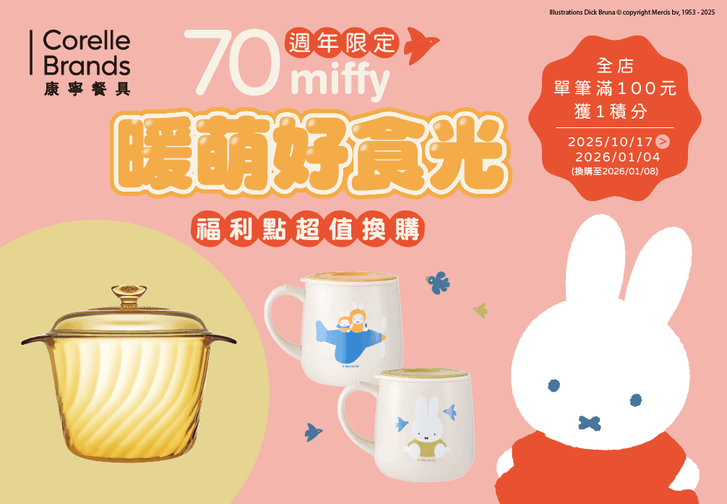 | 康寧餐具 x Miffy | 2025/10/17 至 2026/01/04 | 積分/福利點 |