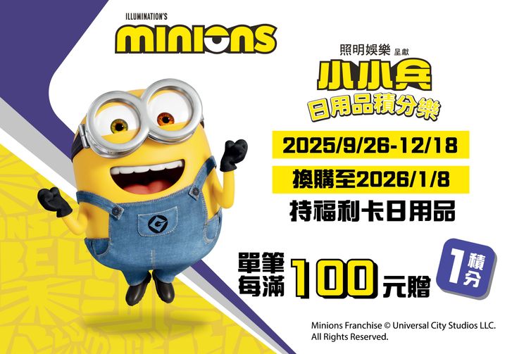 | 小小兵日用品積分樂 | 2025/09/26 至 2025/12/18 | 積分加價購 |