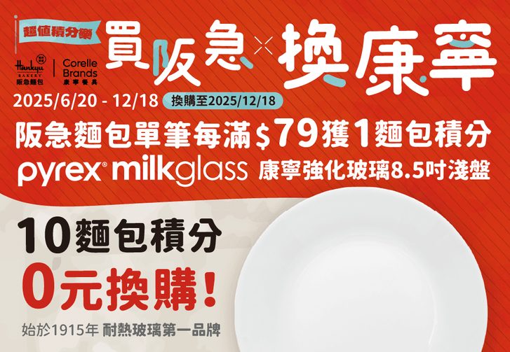 | 阪急換康寧積分活動 | 2025/06/20 至 2025/12/18 | 麵包積分加價購 |