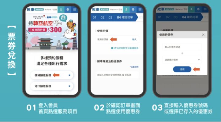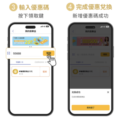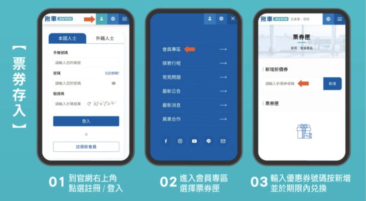 - 點選優惠券並輸入袋鼠交通月卡序號