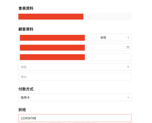 2.填寫客戶資料,並選擇「信用卡」付款,輸入袋鼠月卡優惠碼