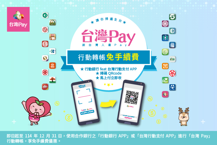 台灣 Pay 主打轉帳給任一合作銀行,皆無須手續費!你沒聽錯!不需要任何手續費!讓你每筆轉帳無負擔,省錢無煩惱!