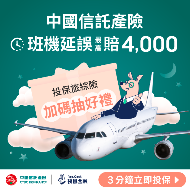 👍 旅遊不便險 班機延誤/取消、行李遺失/延誤 保障通通包