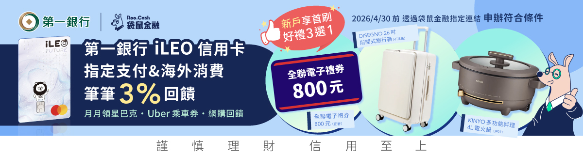 ![]() 王道銀行數位帳戶 了解更多 | ✔️新戶美元定存年利率 8.8%! ✔️新戶新台幣活儲年利率最高 8.8%! ✔️指定行動支付|現金回饋最高8.8%! | 🔺 開戶任務 ⚑ 2026/04/30 前 新申辦 O! Range Card ⚑ 卡友於核卡45天內累積刷卡⼀般消費達8,000元(含)以上 ❍ 完成任務 贈「O!Range Glow 20吋⾶狼⾏李箱」⼄只!*限量500只 |