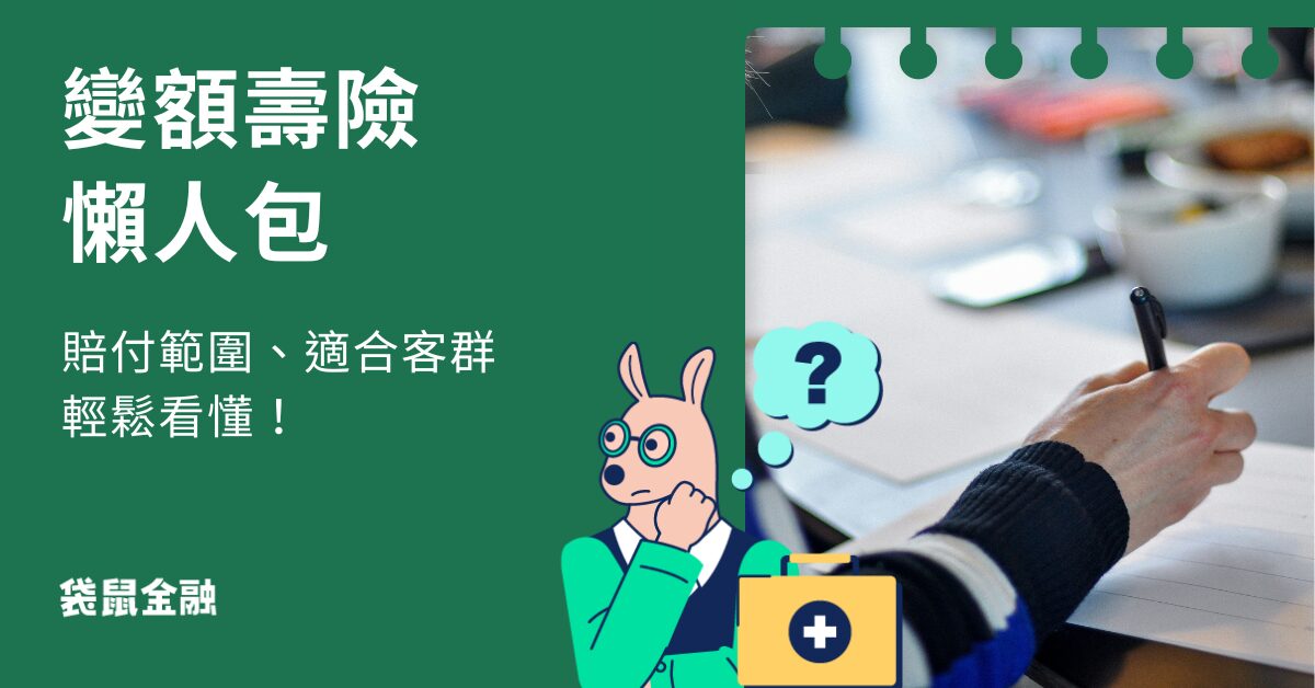 袋鼠金融導讀|變額壽險結合壽險保障與投資功能,是理財與保障兼備的理想選擇,相信也有許多朋友想要更加了解變額壽險。在這篇文章中,袋鼠金融將深入解析變額壽險的核心概念、特色與賠付範圍,並詳細介紹幾個熱門變額壽險產品。最後也透過變額壽險的優缺點,讓有興趣的朋友可以更快地了解變額壽險,在選擇變額壽險時更加明確和安心!除了變額壽險之外,如果還想了解更多壽險與保險相關資訊,也可以看看〈壽險懶人包〉、〈定期壽險攻略〉、〈投保紀錄查詢指南〉唷!